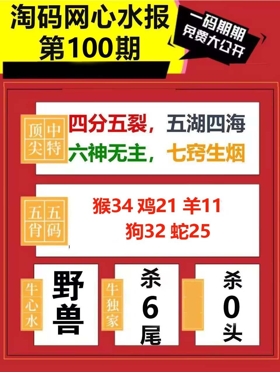 | 100期:必中家野«野兽野兽野兽» 开0 |